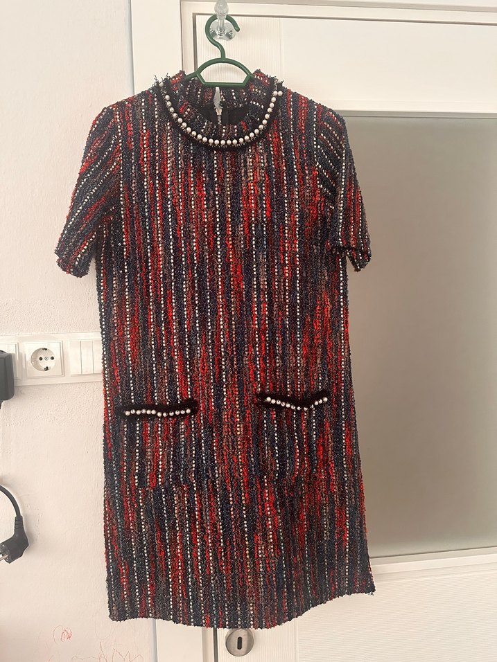 Boncuk işlemeli yakası ve cepleri olan, kısa kollu, desenli çok renkli, vücuda oturan midi triko elbisedir. Bohem ve retro sokak stili yansıtır.