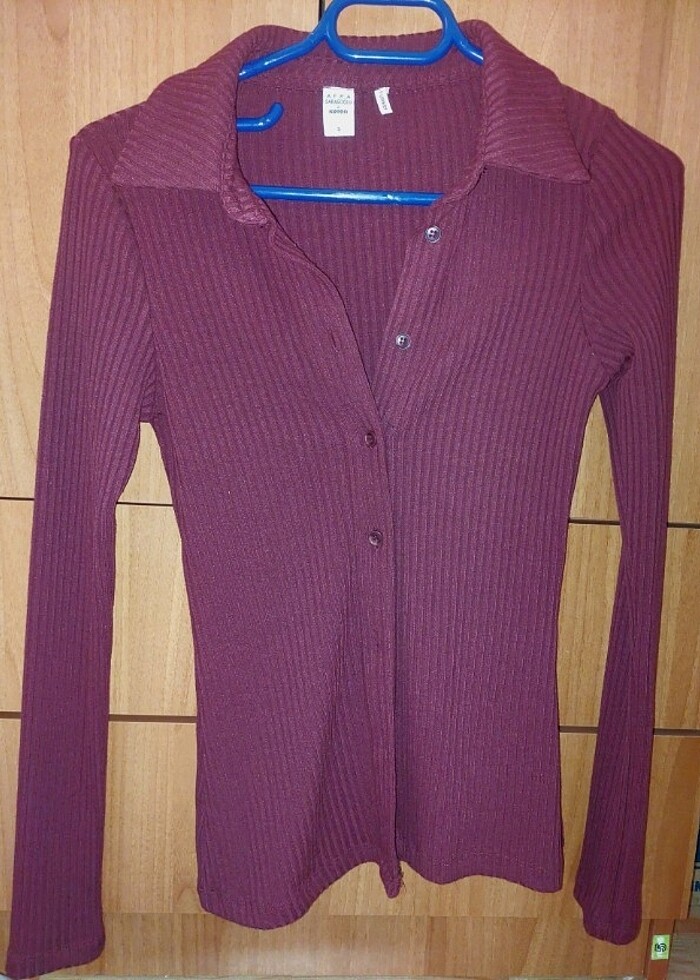 Koton bordo düğmeli triko gömlek bluz tişört