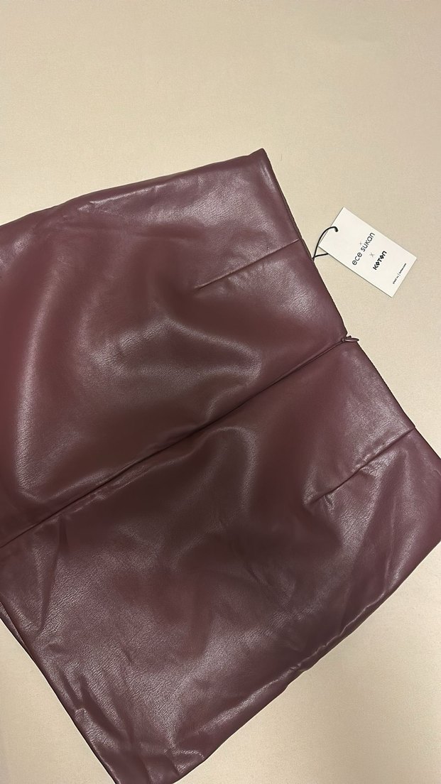 Etiketli, Koton Ece Sukan koleksiyon faux leather bordo mini etek-40 beden.