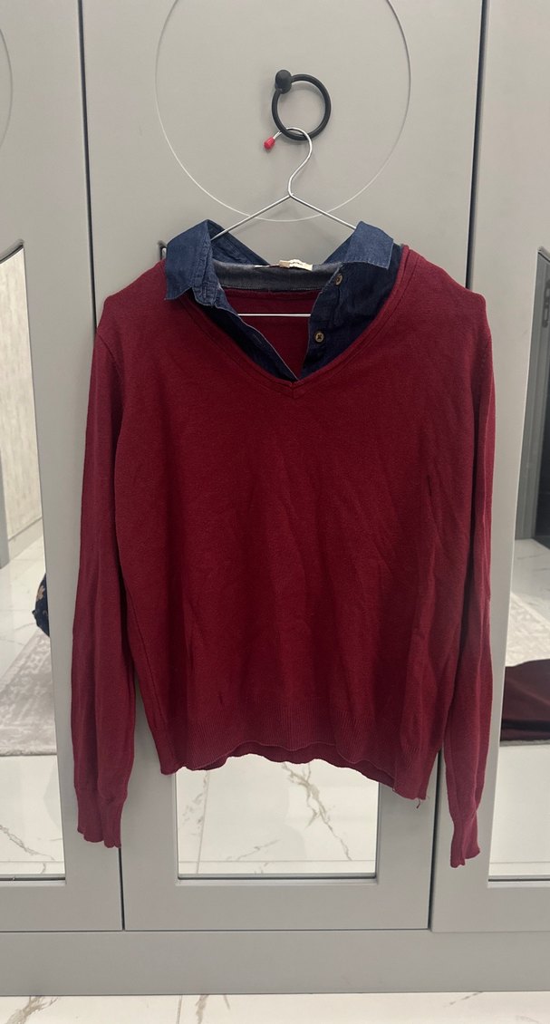 Kot yaka triko kazak Bordo pamuklu kazak, düğmeli yakası ve uzun kollu yapısıyla rahat ve salaş bir kullanım sunar.