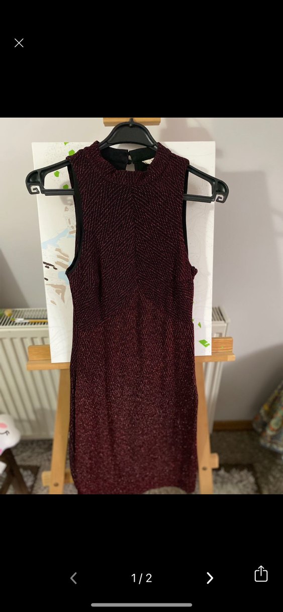 Koton Bordo Triko Yüksek Yakalı Midi Elbise