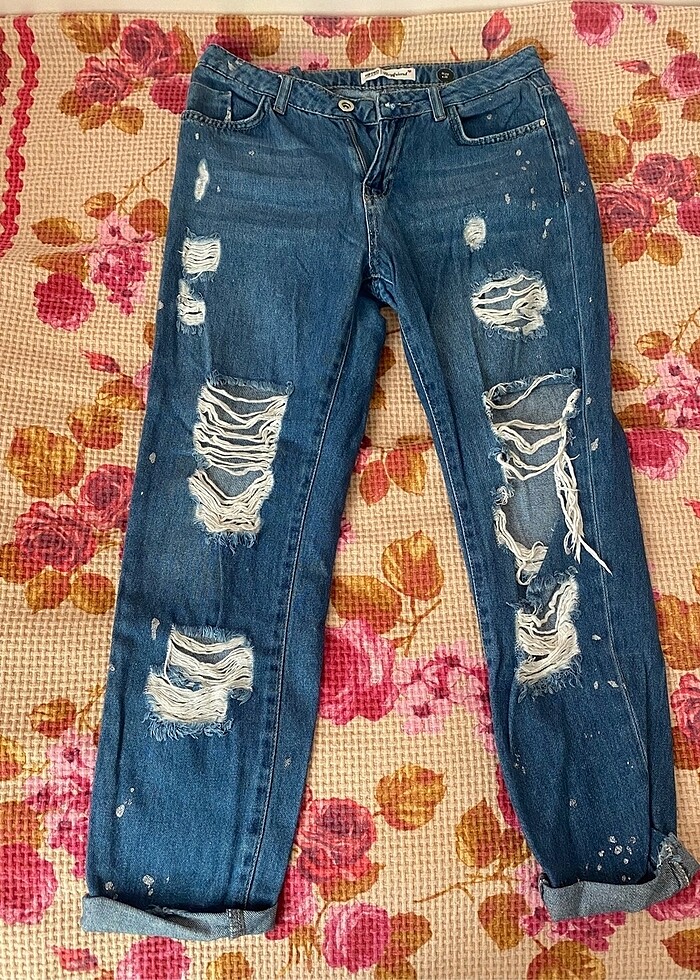 Resimde görüldüğü gibi kendiliğinden yırtıktır bi kaç defa giyildi. Çılgın bi pantolon