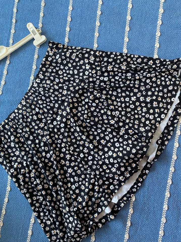 Volan detaylı, koyu mavi çiçek desenli, rahat kesim midi etek. Bohem ve sokak stiline uygun, konforlu bir parça. büyük bedene (42) uygun 85kiloyken oluyordu