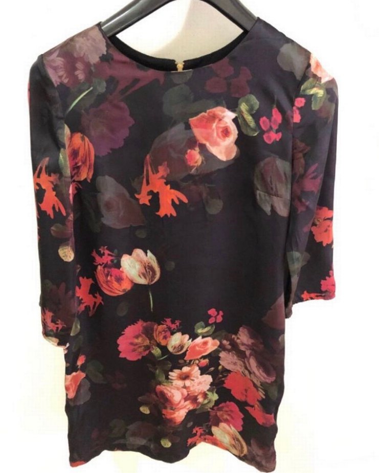 KOTON ÇİÇEKLİ NOM CLASSİC ELEGANT ELBİSE İki kol arası 43 santim Boyu 87 santim Astarlı 36-38 bedene uygundur Ölçüleri dikkate alın lütfen