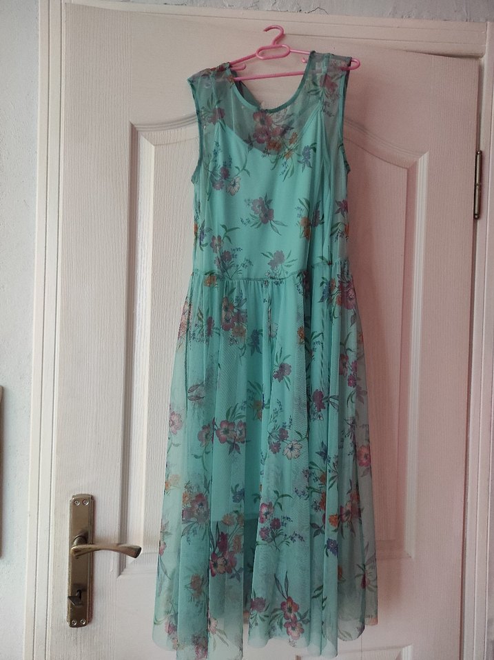 iki kez giydim, şık midi bir elbise. içinde astarı var. sorunsuz. artık giymiyorum yaşıma küçük kaçıyor.