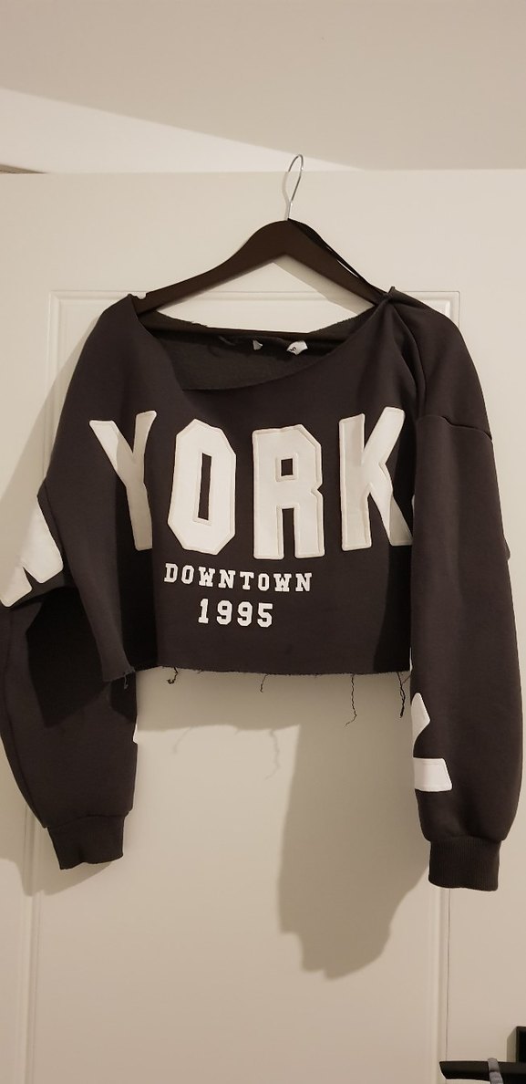 Pamuklu siyah, uzun kollu, baskılı, yuvarlak yaka, bol kesim kadın sweatshirt. Günlük sokak stiline uygundur. İadem yok..