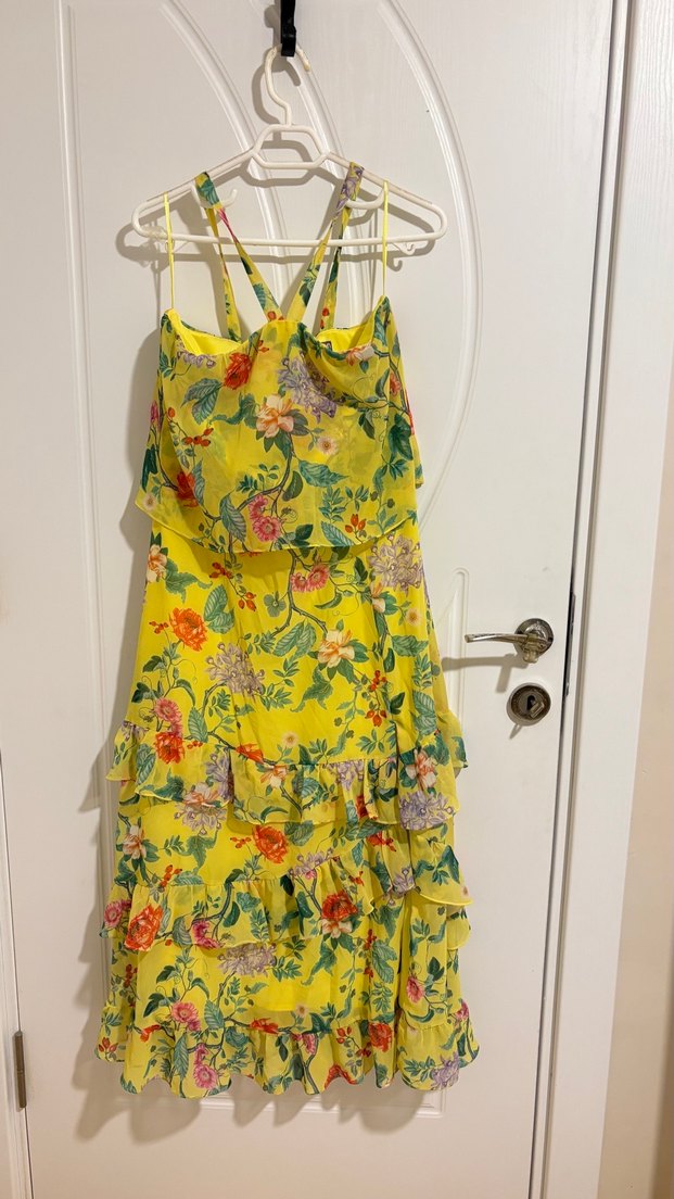 KOTON desenli yaz elbisesi yırtmaclı