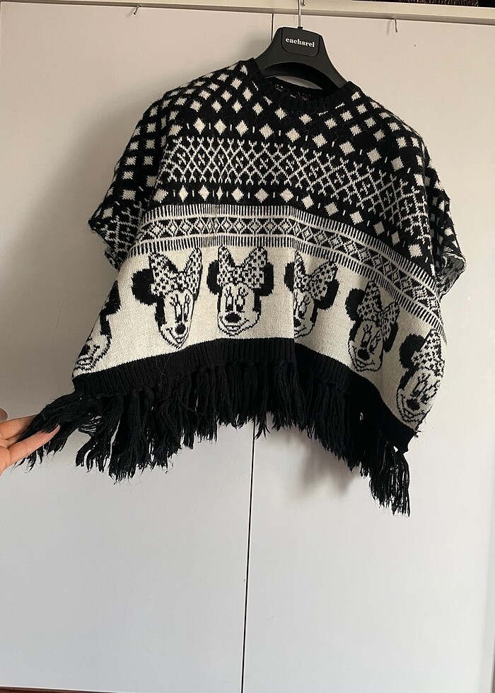 46 cm püskülsüz, 55 cm püsküllü boy, 85 cm en. Az kullanıldı, yepyeni. #KotonDisneyÇocukPanço #mickeymouseçocuktriko #KotonDisneyKızÇocukPanço
