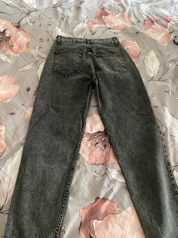 Gri batik desenli, düğmeli, bol kesim kadın denim pantolon. Midi boyda, günlük kullanım için uygundur. Sokak tarzına uygun rahat bir model.