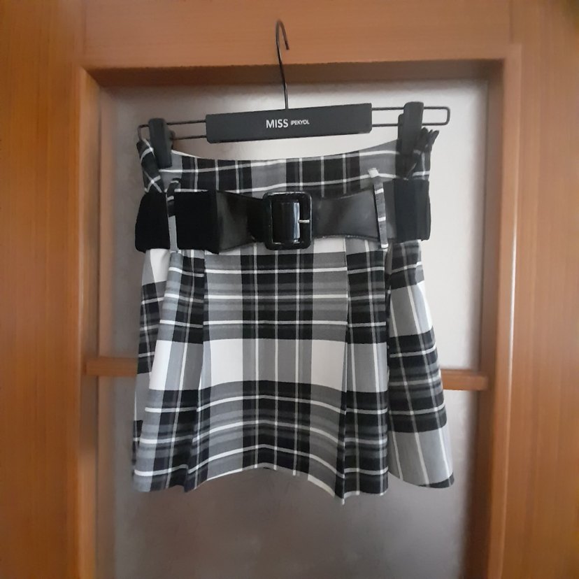 Koton Ekoseli Pileli Mini Etek