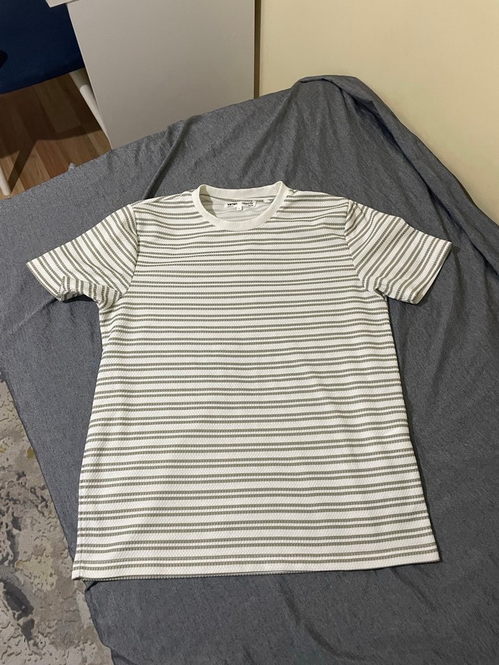 Üründe defo yoktur. Kotondan almıştım ama giymiyorum. Çok az kullanıldı. Renk : Beyaz ve çizgili Beden : L