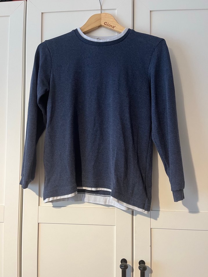 Gri renkte, denim kumaştan yapılmış, yuvarlak yaka ve uzun kollu, bol kesim erkek çocuk sweatshirt. Sade ve normcore tarzda, rahat bir model. Çok iyi durumda bir kusuru yoktur. 13-14 yaş için ancak bir yaş küçüğe daha iyi olur, 10-11-12 yaş rahatça kullanır. Ölçü kol altı en 46 cm boy 59 cm kumaşı ne kalın ne ince lakıst gibi yumuşak ve esnektir. Yakası ve alt kısmı beyaz pamuklu kumaştır. Ürünlerimde hijyen nedeniyle iade yoktur.