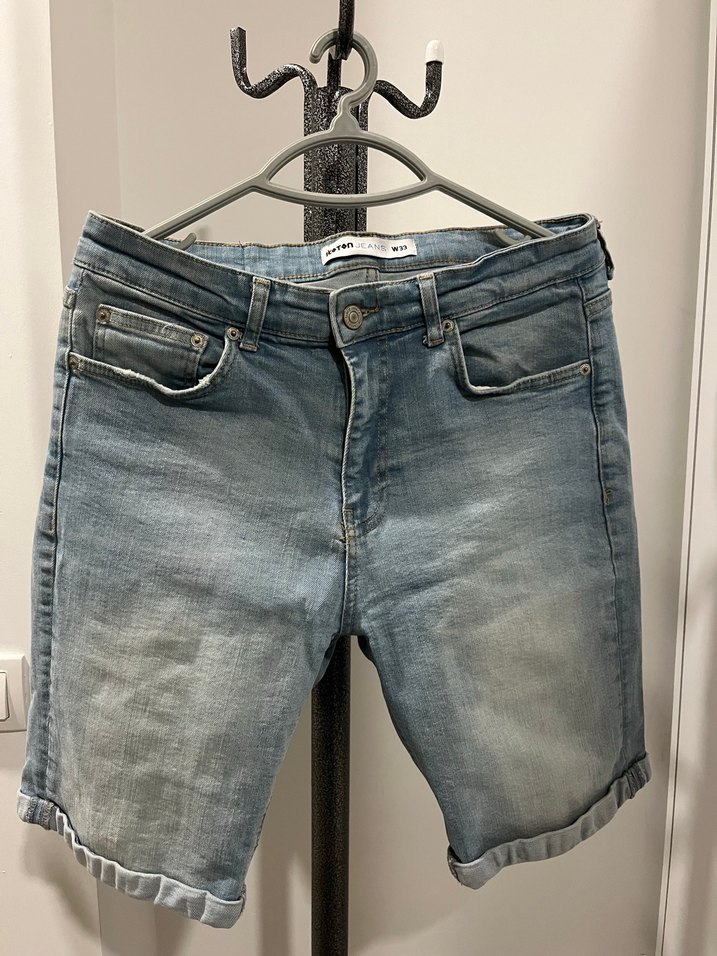 Mavi renkte, kemerli detaylı,kot şort.gündelik kullanım için uygun, desen içermeyen rahat bir tasarım.