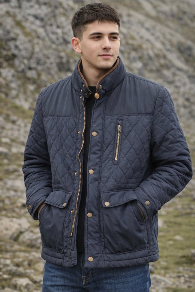 Uzun kollu, orta boy ve lacivert renktedir. Yumuşak ve sıcak kumaştan yapılmış, dış mekan kullanımı için uygundur.