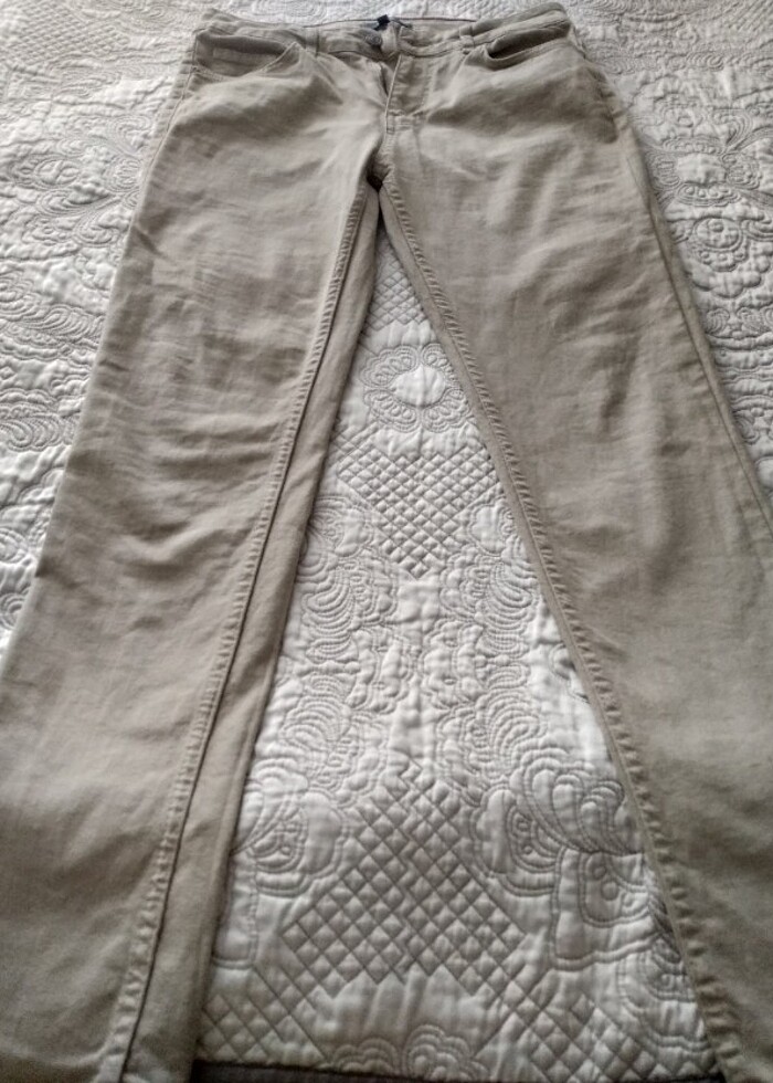 Fazla giyilmedi yıpranma yoktur temiz esnek kot pantolon dar kesim rengi bej