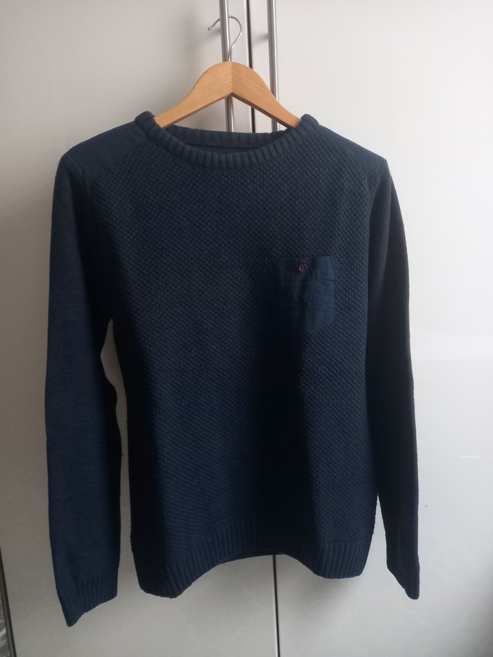 Koton örgü dokulu, L beden bisiklet yaka ve uzun kollu erkek kazak. Regular fit ,omuzlarda ve dirseklerde yama detaylı küçük göğüs cebi bulunur. petrol yeşili renk, günlük sokak stili için uygundur. Sayılı giyildi, sorunsuz...
