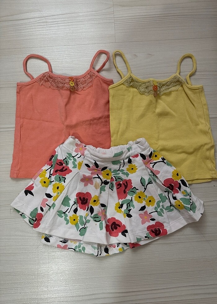 Koton 9-12 ay etek,bluzlar hediye gönderilecektir.bluzların kalıbı çok dardır.ben takım olarak giydirdim