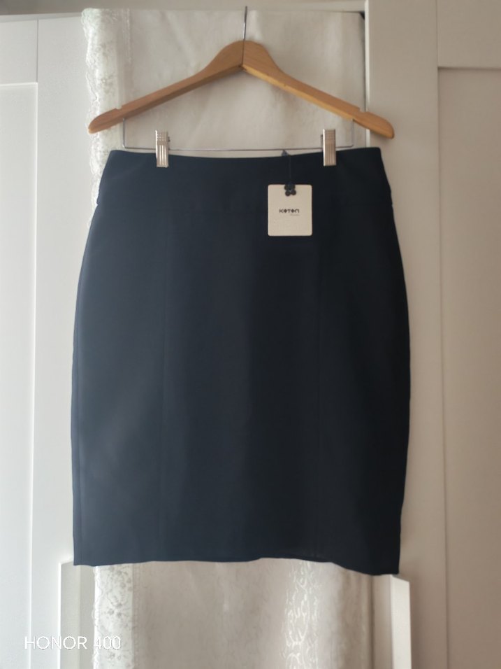Etiketi üstünde. krep kumaş. astarı. kalem etek 40 beden bel 38 cm boy 55 cm