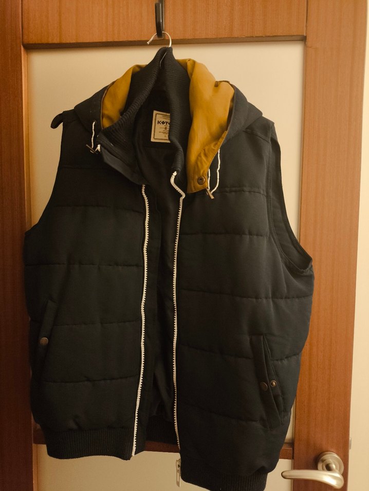 Koton fermuarlı, yüksek yakalı ve kolsuz bu yelek, yumuşak ve sıcak kumaştan üretilmiştir. Normal midi boyda, günlük sokak stiline uygundur. Koton şişme yelek,L beden boy 73 cm iki kol arasi 54 cm durmaktan kapsonun yanındaki ince lastikler gevşemiş olup temiz 3/4 kere giyilmistir