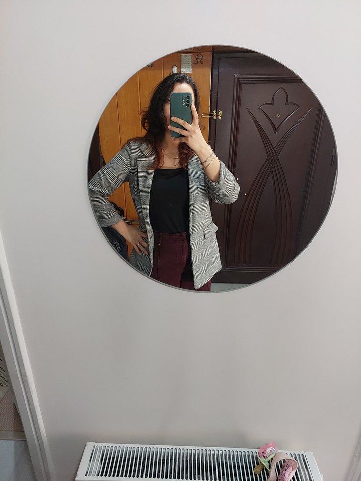 Koton markalı, gri ve beyaz desenli blazer ceket rahat kesimdir hiç giyilmedi astarlıdır