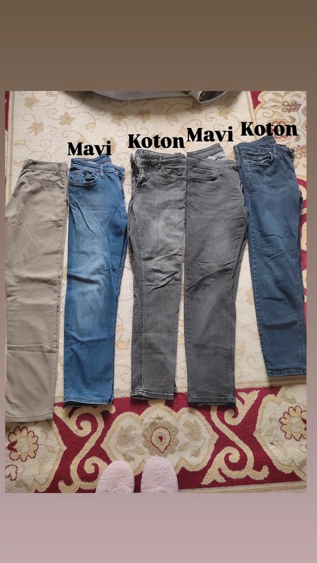 Koton marka gri renk bol kesim denim pantolon, kemerli ve normal boyda, günlük rahat kullanım için uygundur. Desensiz ve konforludur.