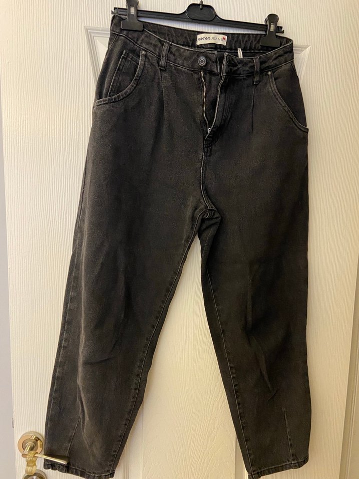 Koton Gri Bol Kesim Kemerli Kadın Kot Pantolon