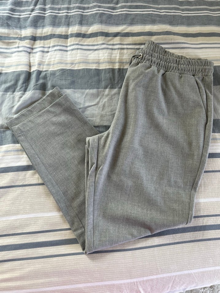 Gri renkte, keten kumaş boru paça pantolon az kullanıldı bir sorunu yok