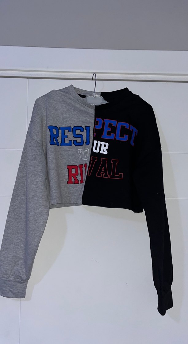 Koton Gri Siyah Baskılı Kadın Kısa Sweatshirt
