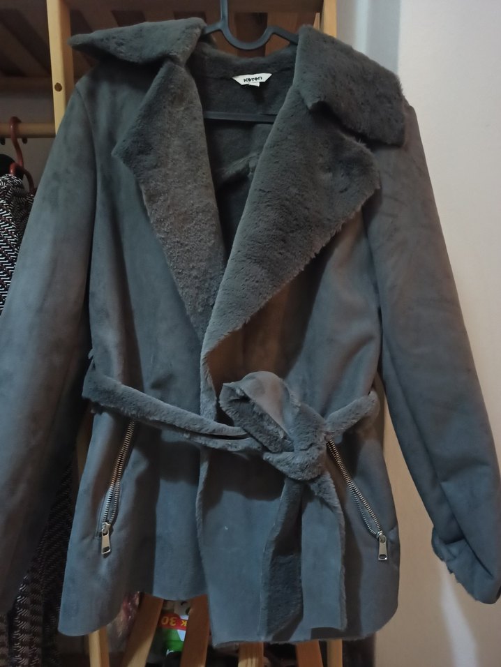 Az kullanıldı yeni durumda. Ölçü bilgileri fotoğrafta bulunuyor. Gri süet kumaştan, kürklü detaylı kadın ceket. Salaş kesim, uzun kollu ve fermuarlı ceplidir. Günlük kullanıma uygun rahat bir sokak stili sunar.