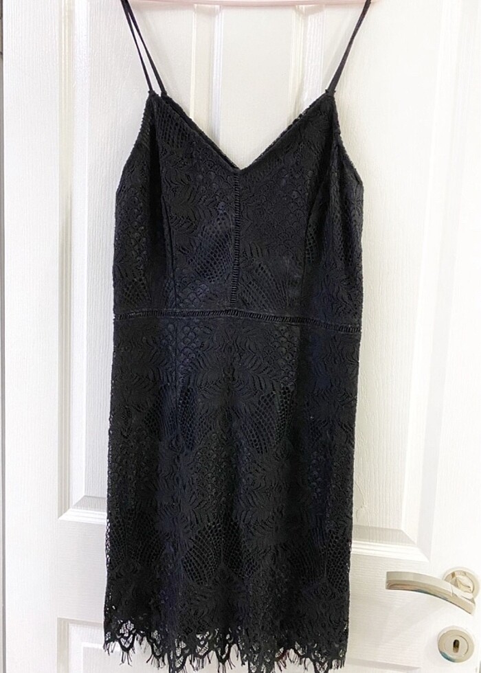 Astarlı ve tamamen kalın güpürden yapılmış bir elbisedir.