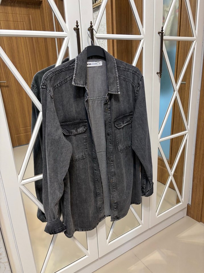 Gri denim kumaştan, düğmeli, bol kesim, uzun kollu ve yakalı midi uzunlukta kot ceket. Günlük rahat sokak tarzı için uygundur. Sıfır ayarında hiçbir sorunu yoktur. Kotondan alınmıştır. L bedendir.