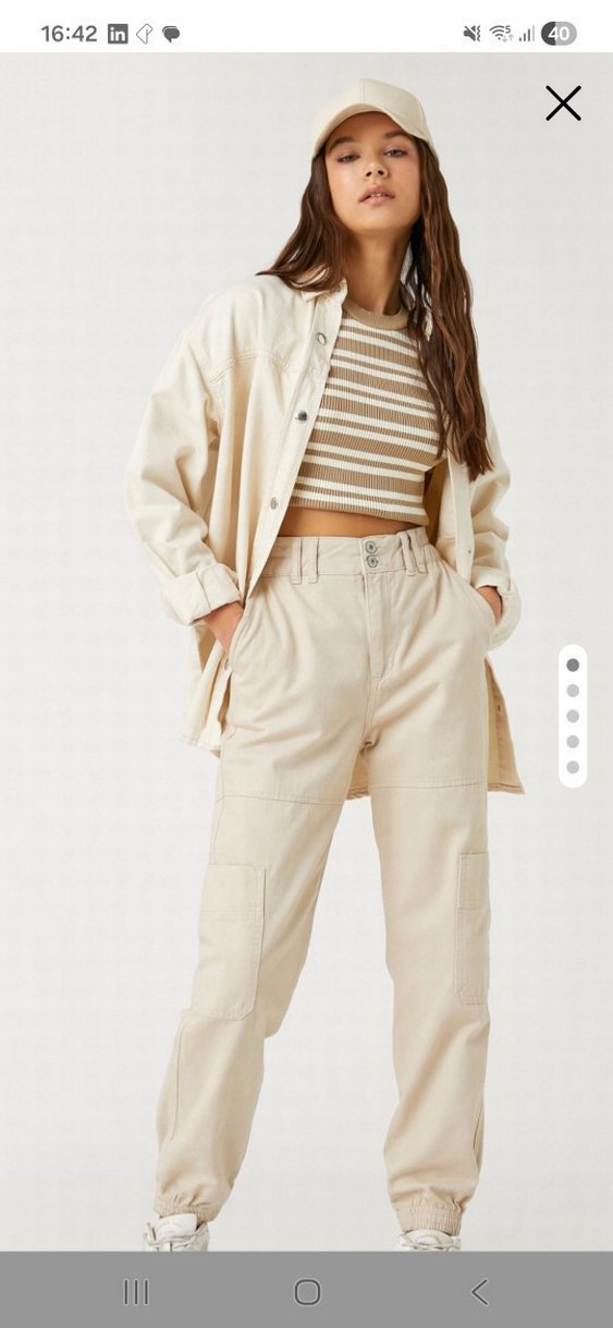 %100 pamuk cep detaylı jogger kot pantolon haki renginde. Kusuru / yıpranması yoktur. 34 beden ama beli lastikli p olduğu için 38 bedene kadar rahat bir şekilde kullanım sağlanabilir. 34 bedende biraz bol durur hatta ama belden tam oturur. ben 36 bedenim 34 almıştım. bej renk