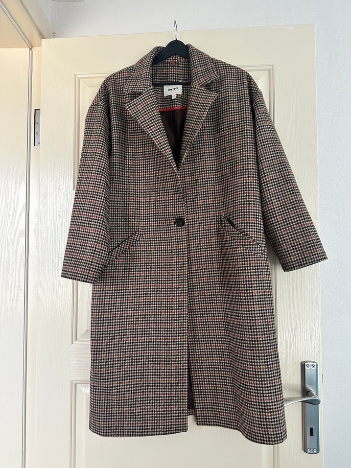 Kahverengi ekoseli yün kaban