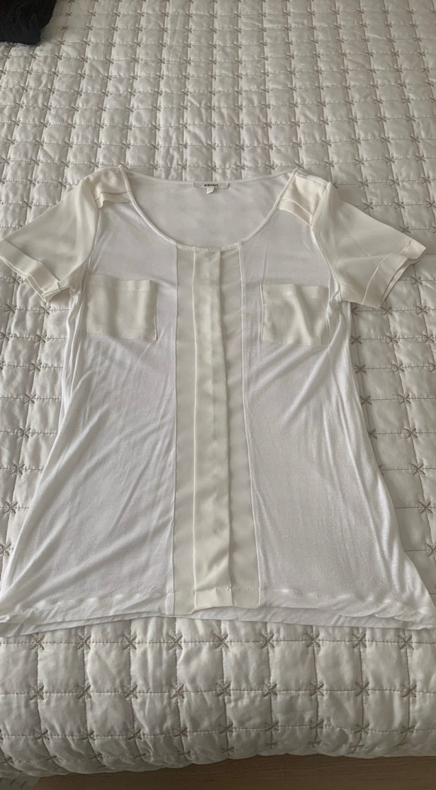Kırık beyaz kol cep ve öndeki şerit tül detaylı tiril bir bluz kaliteli penye kumaştır iki koltuk arası 46 cm hafif esnektir boyu 72 cm