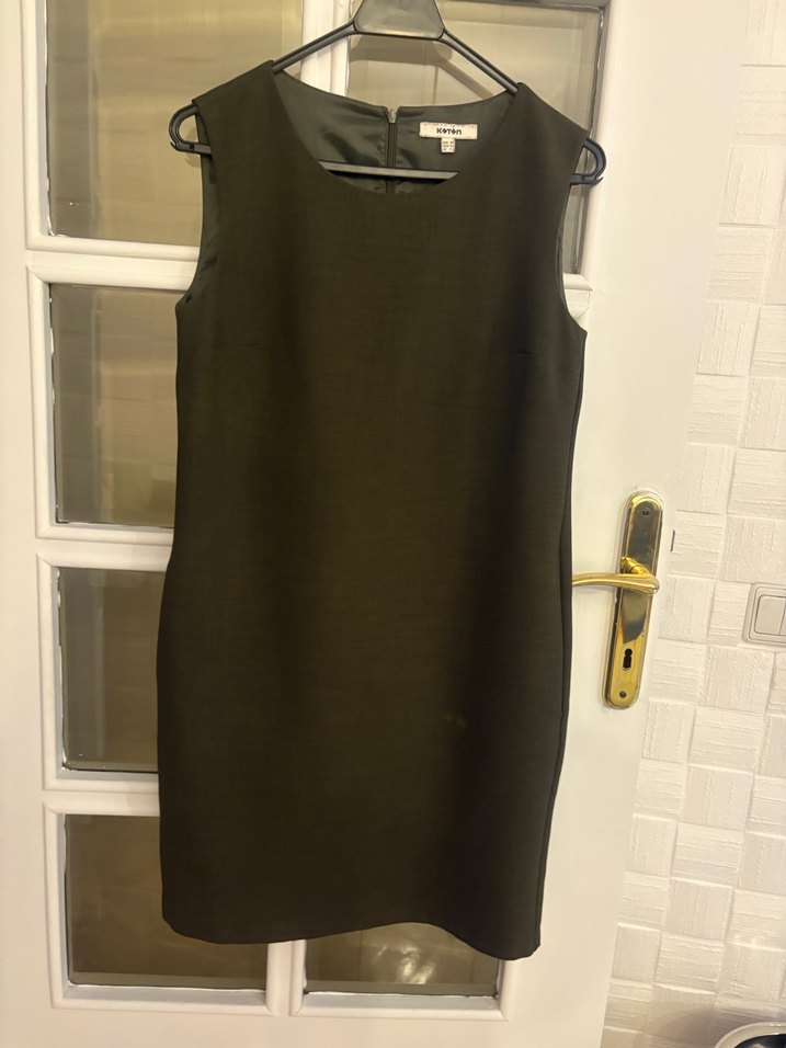 36 beden koton haki renk kadın elbise. içi astarlıdır. Ön kısım lekelidir fotoğraflarda belirtilmiştir iki kol altı: 39 cm