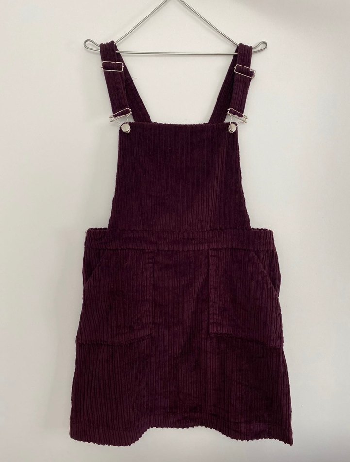 Bordo süet askılı, tokalı kayışları bahçıvan elbise ve cep detaylı, vücuda oturan kısa salopet.