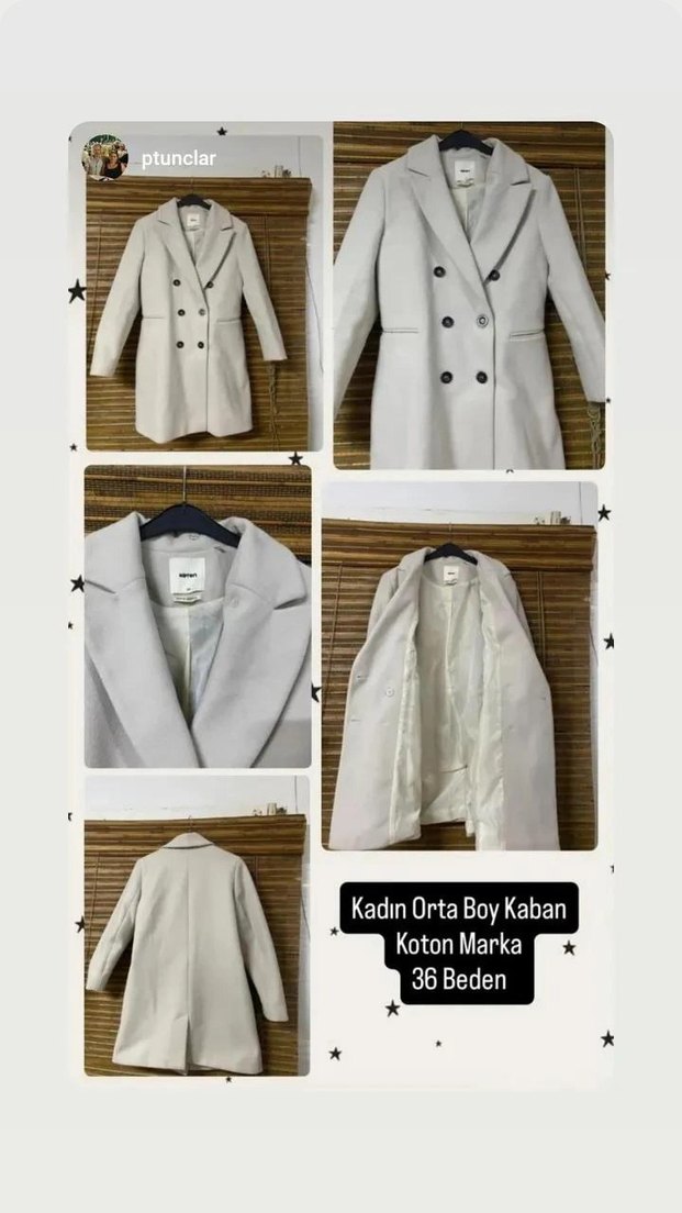 Koton Kadın Gri Mini Kaban, 36 Beden