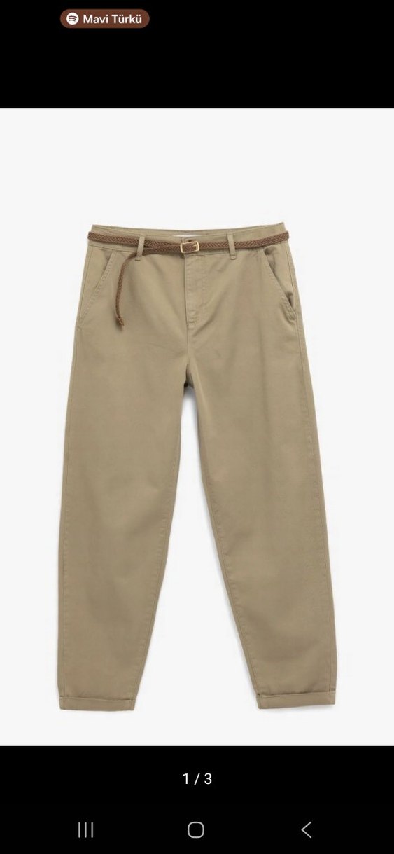 Kadınlar için kemerli, bej renkli pamuk boyfriend pantolon. Normal kesim ve midi boyda, günlük kullanıma uygun rahat bir tarz sunar. koton kadın Haki yeşil pantolon Yüksek Bel Duble Paça Pamuklu Kemerli Chino Pantolon s-m bedene uyumludur ben 155 60 kg yum 1 kez giyildi marka koton %100pamuk