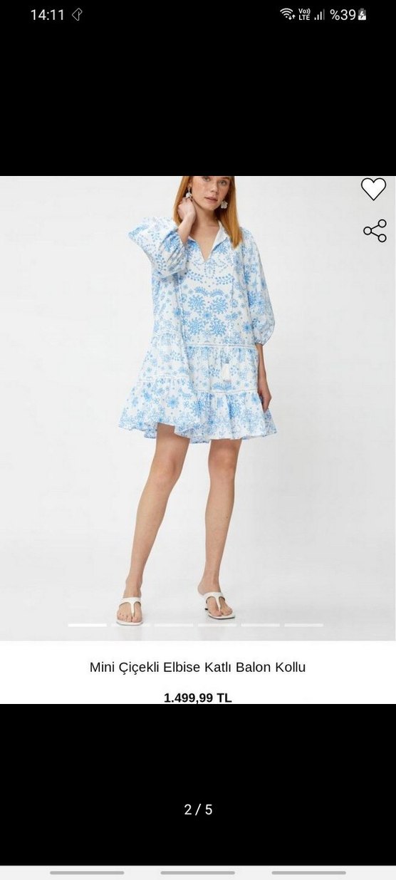 koton kadin Mavi Mini Katlı Balon Kollu Elbise