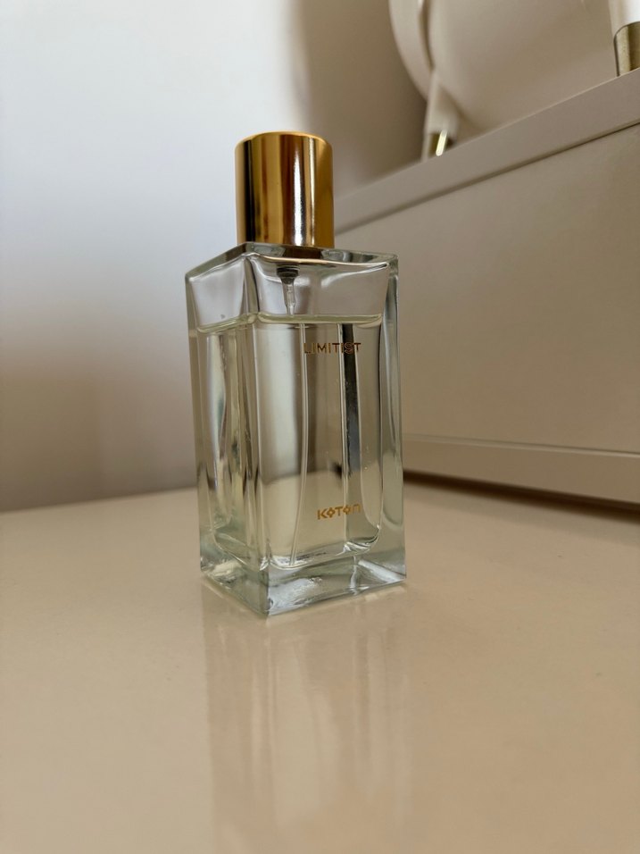 Altın kapaklı, şeffaf dikdörtgen cam şişede kadın parfümü, zarif bir koku sunar. Görüldüğü kadar kullanıldı 1 ay önce mağazadan alındı