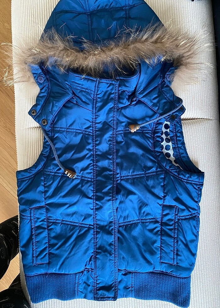 Kapüşonu çıkıyor fermuarlı. Kullanmadığım için satıyorum. İp kısımlarının ucundaki suni deri parçaları hafif soyuldu. Resimde de görüldüğü gibi
