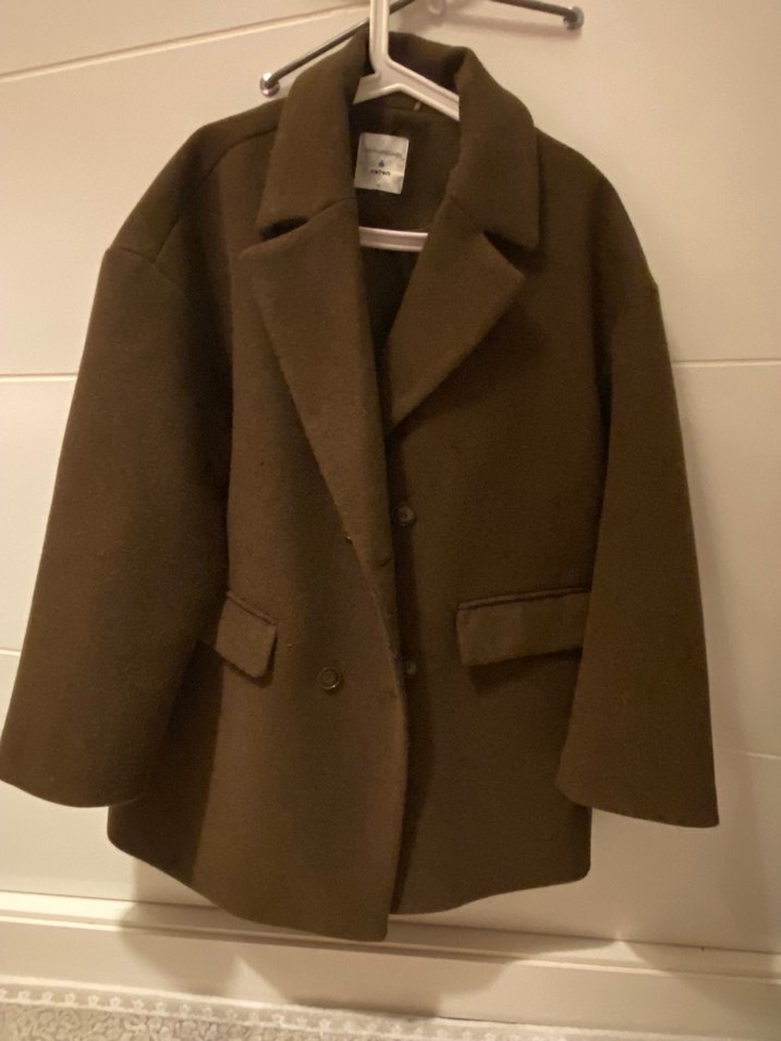 Koyu kahverengi kısa kaban, çift düğmeli ön ve iki cep detayına sahiptir. Klasik yaka ve hafif bol kesimdir . Birkaç kere giyildi. Koton Şahika Ercümen koleksiyonundan . 42 bedendir . Bir kusuru yoktur