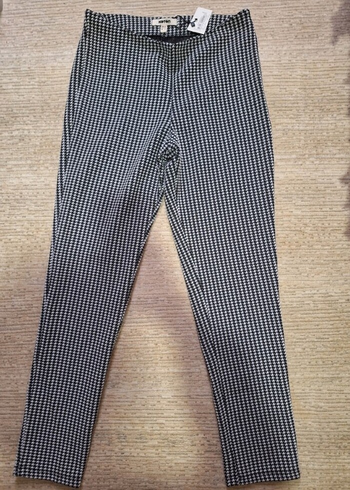 Koton kazayağı desenli pantolon. Xs beden ama s bedene de uyar. Hiç giyilmedi etiketli. Yandan fermuarlı.