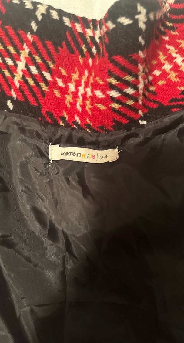 Koton Kids Kırmızı ekose Desenli, astarlı panço