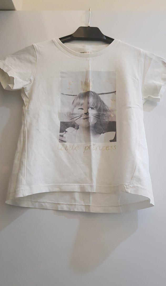 Koton marka, üzerinde şirin bir çocuk baskısı ve 'Little Princess' yazısı bulunan pamuklu tişört. Ürün çok sevildiği için sık kullanılmıştır; bu nedenle beyaz renginde hafif bir solma mevcuttur ve baskı üzerindeki bazı sim detayları dökülmüştür. Ancak kumaşında yırtık, sökük veya kalıcı bir leke yoktur. Günlük kullanım, kreş veya ev giyimi için hala çok ideal ve yumuşacıktır. Dürüst satıcı olarak tüm detayları belirttim, fiyatı da bu sebeple çok uygun tuttum. Diğer ürünlerimle birlikte toplu alımda indirim yapabilirim.