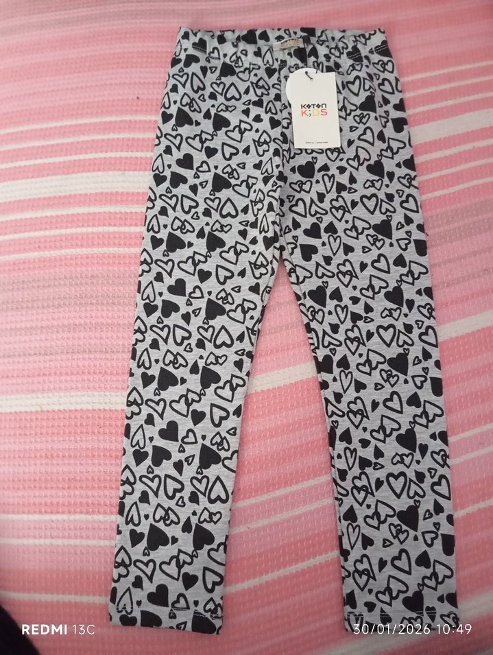 Gri renkli, siyah kalp desenli, elastik bel çocuk taytı, yumuşak pamuk kumaştan, yeni etiketli 5,6 yaş sayfamda aynısının 11 ,12 yaşta mevcuttur ❤️