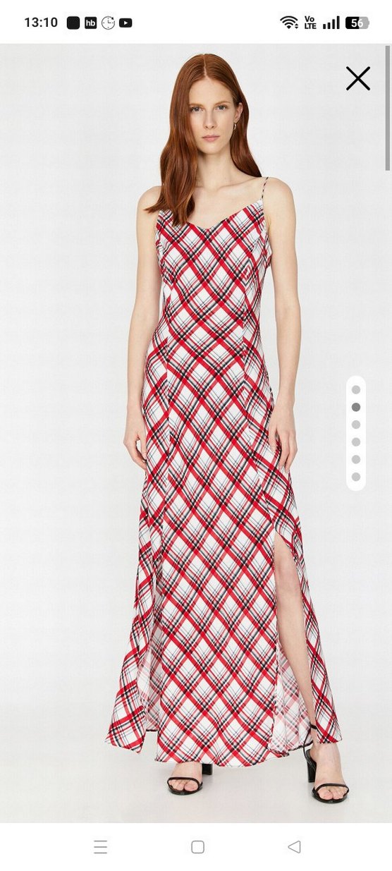 Koton Kırmızı Ekose Uzun Askılı Elbise