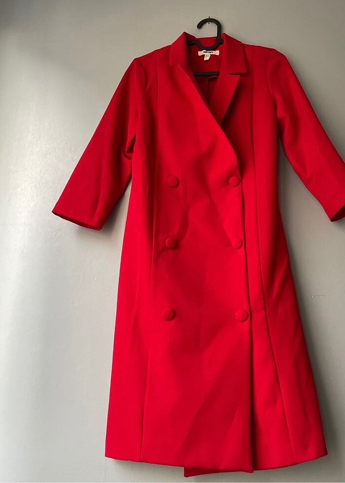 36 beden. Düğmeli. Gömlek yaka. 1 kez giyildi. Temiz. Boy 98 cm. Omuz 36 cm. Koltuk altından en 38 cm. bel 36. Kol 44,5 cm.