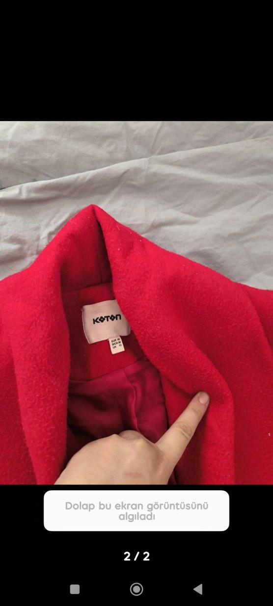 Koton markalı,ktokalı kuşak kırmızı, midi uzunlukta, uzun kollu, yumuşak ve sıcak kaban. Günlük ve özel günlere kullanıma uygundur.