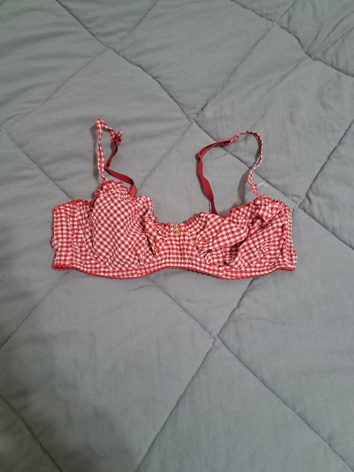 Parlak kırmızı renkte, vintage tarzda, ayarlanabilir askılı midi uzunlukta sütyen.